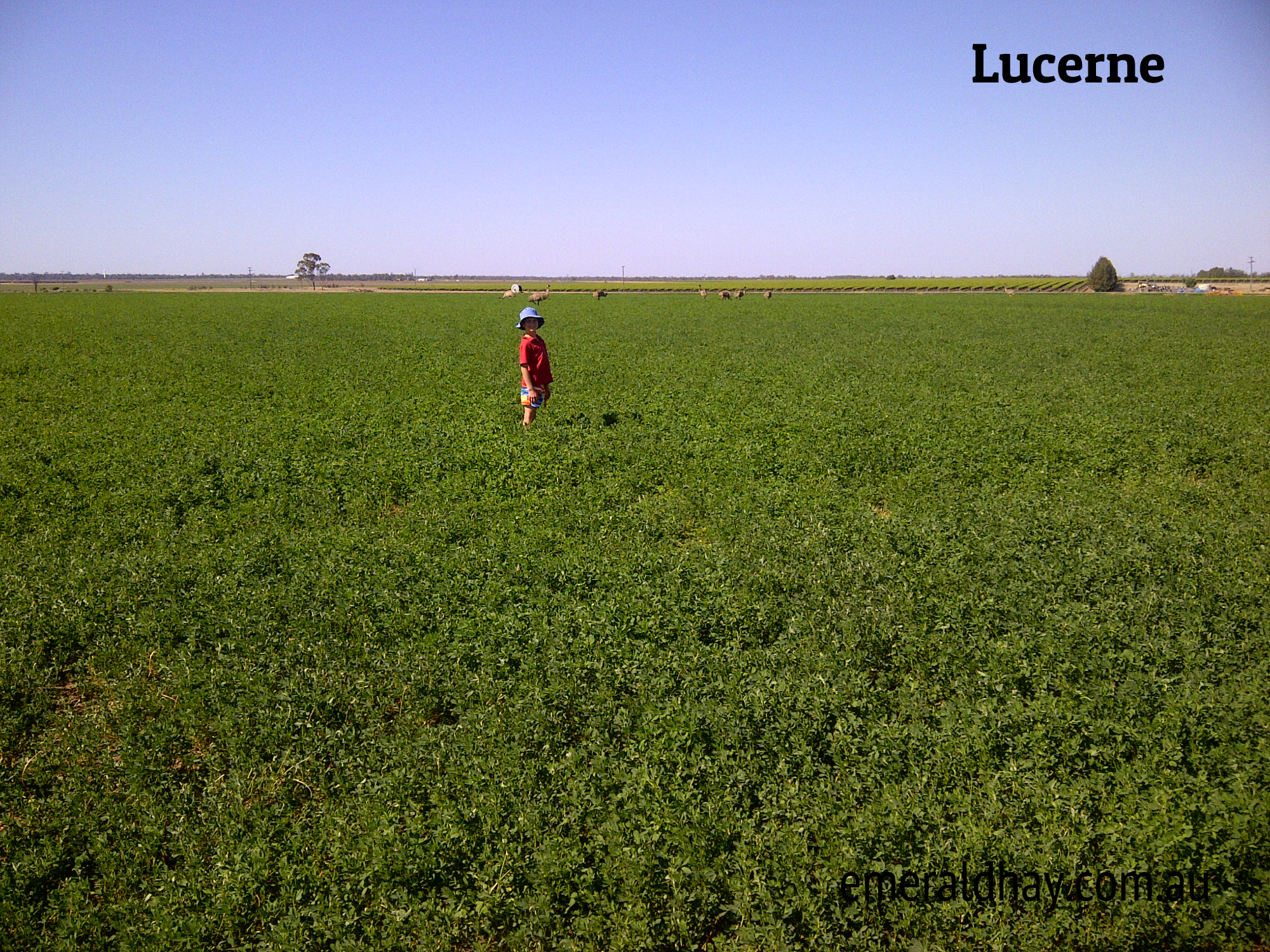 We grow the newer varieties of lucerne which are fine stemmed & produce lots of leaves making them quick to cure. All lucerne hay is grown under a centre pivot irrigator producing an uniform crop which makes for weed free & good solid bales. Mowing & carting of lucerne are done during the day, while raking & baling is done at night/early morning utilizing the moisture to maximize leaf retention & produce softer hay. In the Central Highlands' climate it takes only 3 to 4 days to cure lucerne hay, thus reducing bleaching & risk of weather damage. We cut lucerne hay all year round depending on irrigation water availability.